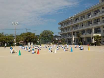 5分ずつ、グラウンド中央で練習する時間を取りました。エールの練習をする団、応援歌のダンスを練習する団など、それぞれの団が心を一つにして取り組んでいました。