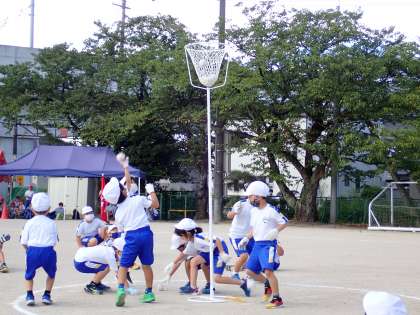 2年生は、玉入れをしました。一生懸命かごにめがけて、どの団もたくさんのボールを入れることができました。この経験を胸にこれから先も何事にも全力で頑張ってほしいです。