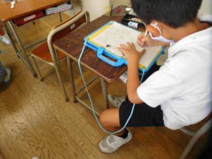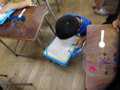 今日の図工の学習では、友だちが作ったひかりのプレゼントの鑑賞をしました。さまざまな模様をしたうちわや色鮮やかなうちわまで様々あり、友だちのすてきなところをたくさん見つけていました。