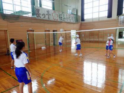 前回と同じ流れで学習を進めました。ラリーの中で声をかけ合ったり、励まし合ったりする姿が見られ、よい雰囲気で練習することができました。