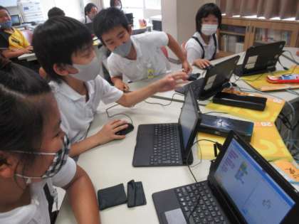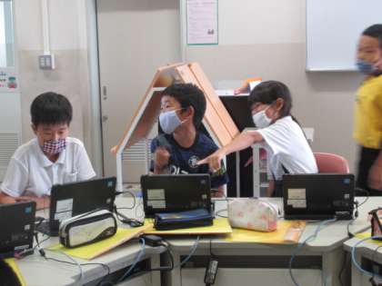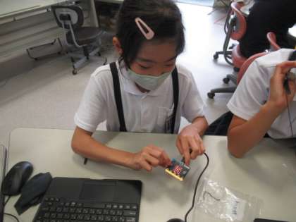 今日は、教頭先生に教えていただきながら、「スクラッチ」「マイクロビット」のプログラミングをやってみました。子供たちは、基本のプログラムを伝えると、自分たちでどんどん発展させていました。よりよい未来をつくっていく、プログラマーの卵がたくさんいるな、と嬉しく思いました。