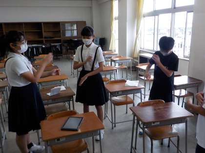 今日は、グループで考えたボディパーカッションの練習を行いました。どのグループも、熱心に練習に取り組んでいました。