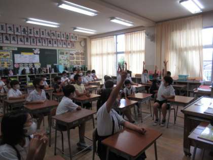 全員が意見を発表するということを今日の話し合いのめあてにし、どの子も真剣に参加することができました。友達の意見に賛成したり、付け加えたりし、よりよいアイディアボックスができそうです。