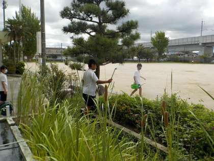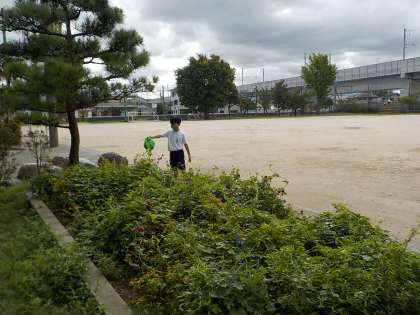 いきいきタイムに栽培委員が花壇の水やりをしていたところ、何人かの6年生がボランティアで水やりの手伝いをしてくれていました。