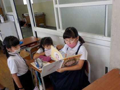 今日の学級活動の時間は係活動に取り組みました。みんなから募集したイラストを掲示したり、読み聞かせの練習をしたりと、それぞれの係で、熱心に活動に取り組んでいました。