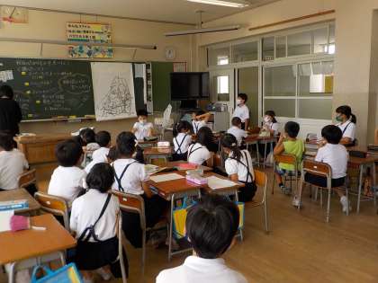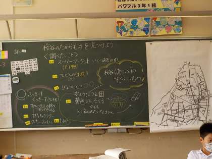 総合的な学習の時間、「桜谷のたからものをみつけよう」をテーマに、桜谷にあるステキについて、考えを出し合いました。