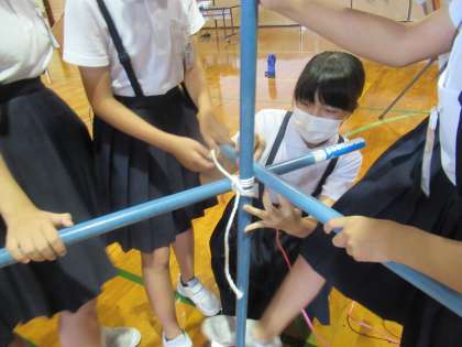 悪戦苦闘しながらも、仲間と声を掛け合って、縛り方を覚えていきました。
