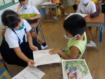 理科の時間、前回の実験で分かったことを近くの友達に伝え合う学習をしました。