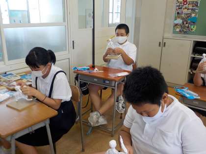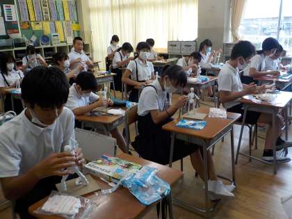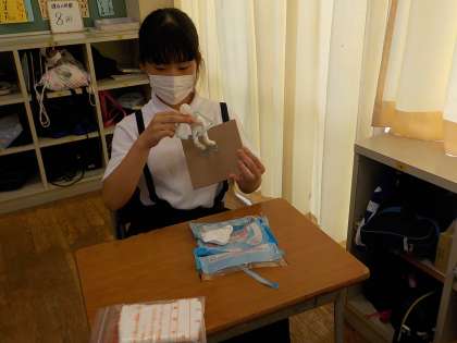 6年生は図工の時間、「12年後の私」と題して、芯材と紙粘土を使って、作品を作っています。
