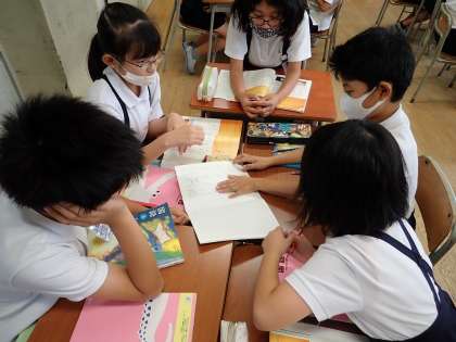 自分が作ってきた俳句を出し合い、グループで推敲しました。言葉を選ぶ感覚を磨き、語彙を増やしてほしいと思います。