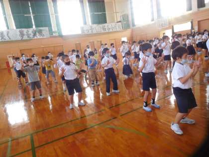 みんなで、「パントマイム」をしてみました。目の前の壁があると思い、手を止めて体だけを動かしたり、エスカレーターのように斜めに体を移動させたりしました。