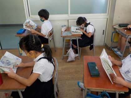 火曜日の朝は、読書の時間です。読書の秋、3年生はいろいろな本を読んでいます。すぐ読めるように、いつも机の中に1冊は本を入れておくようにしています。お子さんが今、どんな本を読んでいるのか、ご家庭でも話題にしてみてはいかがでしょう。