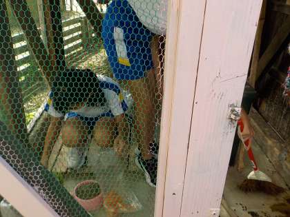 いきいきタイム、今日の飼育担当者が、ウサギの世話をしていました。人参やレタスを美味しそうに盛りつけていました。子供の発想ですが、なるほどと思わされました。ウサギのマーブルは、うれしそうに人参をかじっていました。