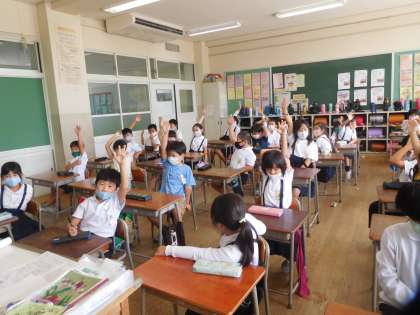 「家の人」や「天気」などそのお題にどんな言葉があるかを発表してもらいました。みんな、勢いよく手を上げ、発表していました。