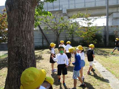 今日はよく晴れた気持ちのよい日でした。生活科の時間に、グラウンドへ秋を見つけに行きました。子供たちは、「葉っぱが赤くなってる!」「いちょうの葉っぱもあったよ」とうれしそうでした。