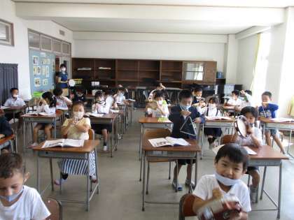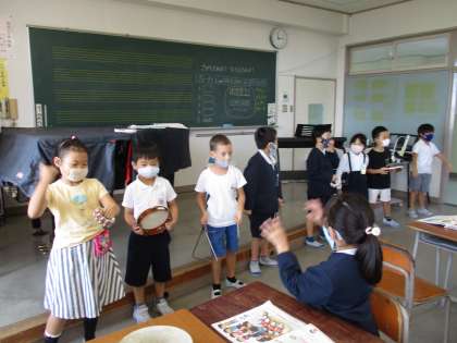音楽科で、4つの楽器を使って色んな音を出しました。「きれいな音は、こんな感じかな」「素早く動かして音を出してみよう」と、音の出し方を工夫しながら、みんなで発表を聴き合いました。