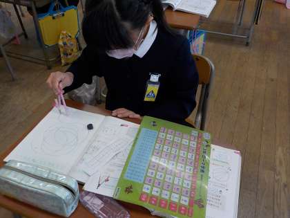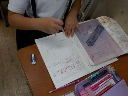 昨日のノートを読むと、学習の振り返りに「コンパスを使わなくても円がかけるのが分かりました」「早くコンパスを使ってみたいです」と書いている子がいました。