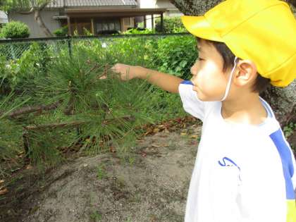体育の後に、秋をみつけました。グラウンドにある松の木には、小さな松ぼっくりのようなものができていました。うさぎ小屋の近くには、ほんのちょっとどんぐりが落ちていました。いろんな草花を見つけている子もいました。まだまだこれからも、桜谷小学校の秋を見つけていきましょうね。
