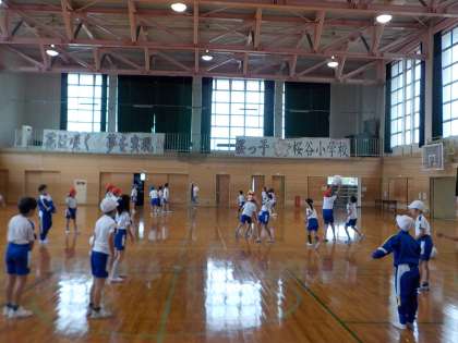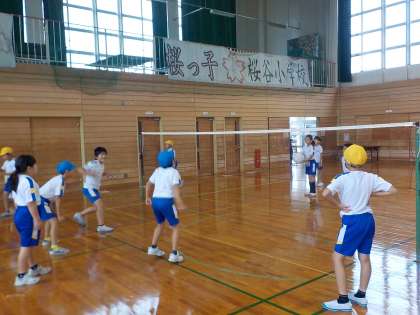 今日の体育の学習では、ゲームのルールを確認しました。その後、チームごとの練習を行いました。サーブを相手コートにしっかり打ち込むことが大事だと分かり、サーブ練習も取り入れながら、味方にパスする練習に取り組んでいました。