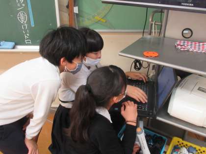 仲間と相談したり、パソコンで調べたりしながら、一生懸命準備をしています。