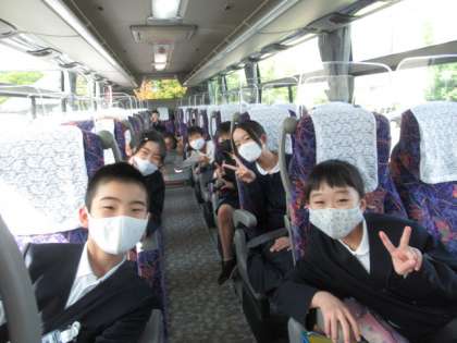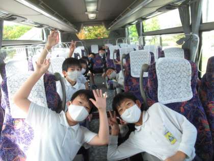 富山市科学博物館へ、校外学習に行ってきました。今年はなかなか校外での活動が出来ずにいたので、4年生になってからは初めてです。どの子も楽しみにしていました。バスの中もとても楽しそうです。