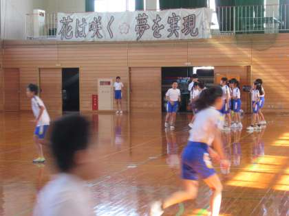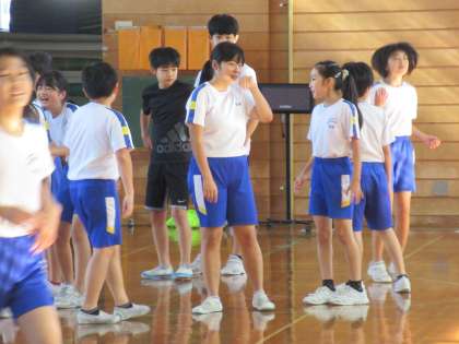 体育科の準備運動の「けいどろ」の様子です。子供たちは、汗びっしょりです。