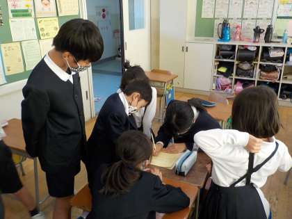 22日に行われる「わくわくフェスティバル」に向けて、事前打合せがありました。縦割り班で集まって、めあてや回る順番を決めました。22日が楽しみです。
