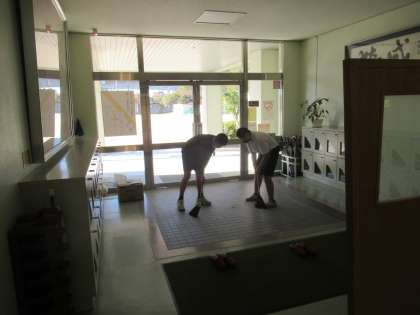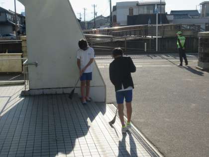 さわやかな秋の朝日を浴びながら、6年生の子供たちが「朝ボラ」に取り組んでいます。