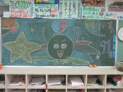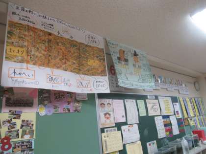 6年生教室の後ろ側に目を移すと、学習の掲示や卒業を意識する掲示があります。