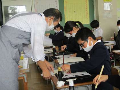 「文字の組み立て方」を意識して書いています。校長先生に頂いたアドバイスをもとに、自分の中でめあてをもち、一枚一枚ていねいに取り組んでいました。