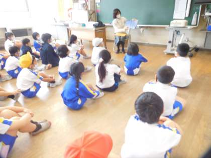 今日の朝のお話会では、2冊の本を読んでいただきました。「おこる」と「はなくそ」という名前の本で、みんなどんなお話だろうとわくわくしていました。みんなにこにこしながら釘付けになりながら見ていました。