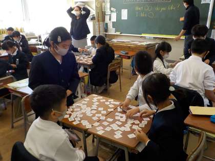 「What's letter do you like?」「I like ○○.」に合わせて、カードを取ったり、相手に聞いたりという活動でした。