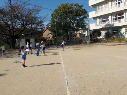 今日は、さわやかに晴れわたり、外にいても気持ちがいい日でした。3年生は桜っ子タイムに引き続きの体育ということで、昼休みは鉄棒やおにごっこに興じていた子供たちでした。体育の時間はソフトボール投げの記録を測定してみました。6月にも一度、測定しましたが、その後の練習を通して記録を伸ばした子もいました。しかし、まだまだ、投運動の経験は少ないので、投げる機会を増やす必要があると感じました。
