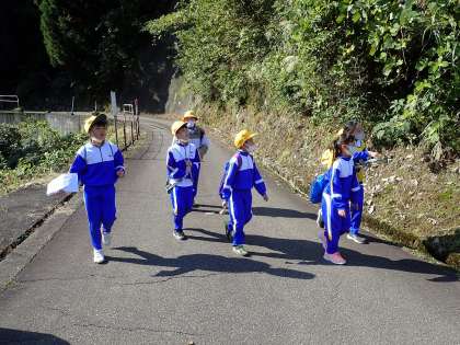 少し肌寒い中でしたが、日が出る時間もある中で、オリエンテーリングを行いました。ポイントを目指して、みんなで明るく楽しそうに歩いていました。