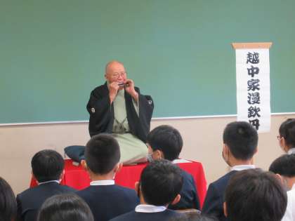 総合的な学習の時間のゲストティーチャーとして、越中家漫欽丹さんに来ていただきました。これまでの豊かな人生経験に基づいた漫欽丹さんの話を食い入るように聞く子供たち。途中、ハーモニカを披露していただいたり、小話を聞かせていただいたりしながら、あっという間に時間が過ぎていきました。