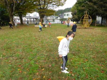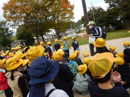 安養坊公園では、1,2年生で決めた遊びをしました。遊ぶときのルールをしっかり守り事故やけがもなく楽しく遊ぶことができました。校長先生から「ゴミが落ちてたら拾って遊びやすい公園で遊ぼう」と言われ落ちているゴミも拾いながら楽しく遊んでいました。どんぐりや木の実や葉っぱもたくさん見つけていました。一緒に交流することで1,2年生の仲がすごく縮まったと思います。