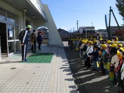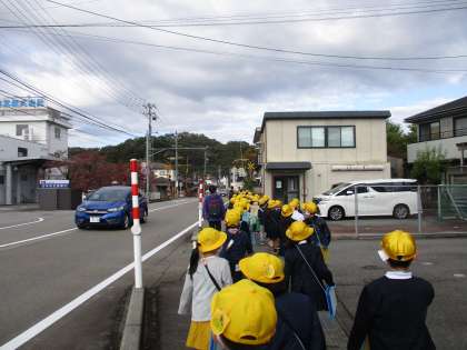 今日は、秋晴れの気持ちの良い日でした。登校後、てきぱきと探検バッグと水筒を準備した子供たち。この日を心待ちにしていた気持ちが伝わってきました。みんなで交通ルールを守って安全に目的地まで歩きました。