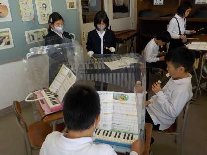 合奏練習では、どのグループも一生懸命練習していました。4人の息も合ってきました。上手くなってきたよと、うれしそうな顔も増えてきました。