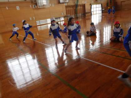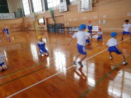 今日の体育では、反復横跳びをしました。最初やり方も数え方もあまりできなかったんですが、何度も練習し、コツをつかみ記録も伸び1回目より5回以上伸びた子もいました。これからみんなの成長するのがとても楽しみです。