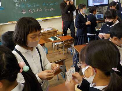 「What's letter do you like?」「I like ○○」という会話で、文字を集める活動を行いました。また、後半は、次回から行う「アルファベット争奪戦」の説明を聞き、ちょっと練習してみました。次回も楽しみです。