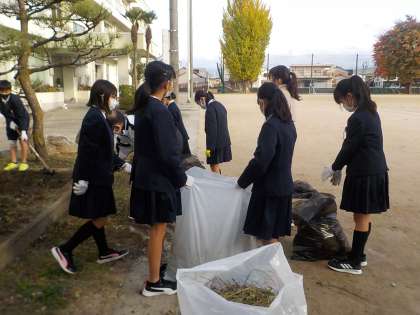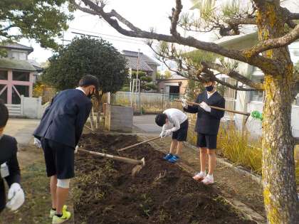 校庭の木々もずいぶん色づいてきました。花壇の花も見頃を過ぎました。今日、飼育栽培委員会では花壇の整備として、枯れてきた花を抜き、耕す作業をしました。花壇の周りの草むしりも行い、花壇はすっきりとしました。
