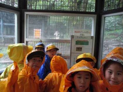 1年生と合流して班ごとの散策です。この後、雨の中の活動になりましたが、1年生にやさしく声をかけたり、カッパをしまう手伝いをしたりするなど、頼もしい姿がたくさん見られました。