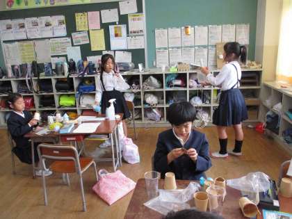 生活科の時間には、みんなで遊べるおもちゃづくりに取り組んでいます。