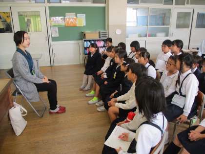 2,3限目の時間に市立図書館の本館の方が来校されました。