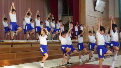学びの発表会では、3年生は器械運動、表現運動に取り組みました。