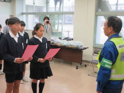 児童代表が、地域の方への感謝の気持ちをもち、交通安全に気を付けて過ごしていくことを誓いました。