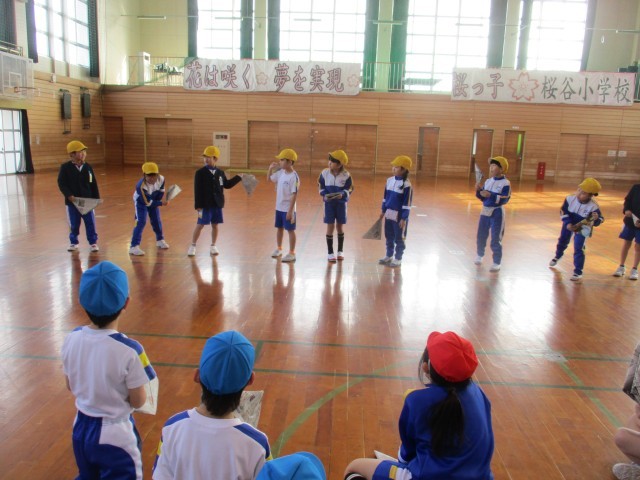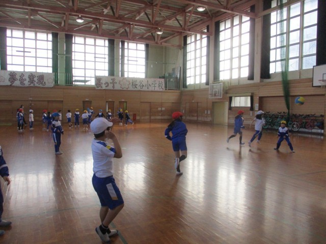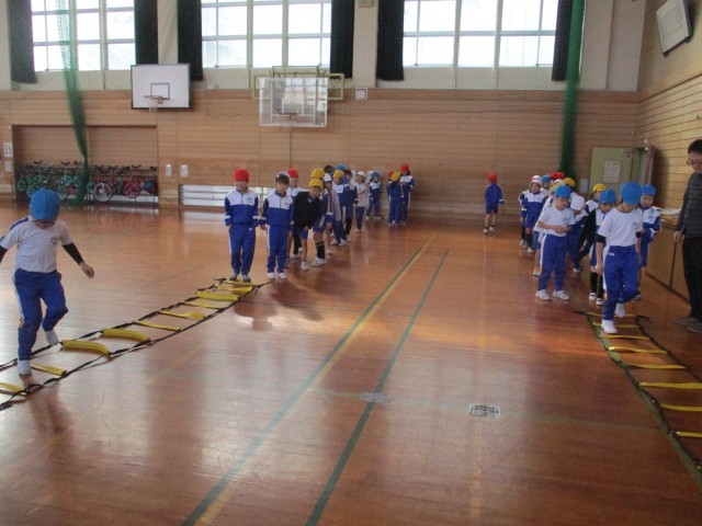 体育科の時間に、チャレンジ技7の紙鉄砲とラダー遊びをしました。紙鉄砲は「ポン!」と音が鳴らすことができるので、子どもたちはとても嬉しそうでした。ラダーでは「クイックラン」「ラテラルラン」「サイドシャッフル」をしました。足の動かし方が難しそうでしたが、「できるようになりたい」という気持ちで練習していることが伝わってきました。