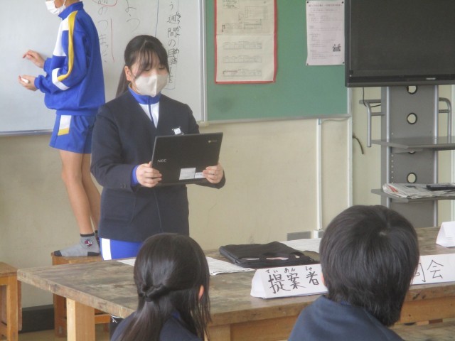 これまで5年生でじっくりと考えてきた卒業を祝う週間の目当て案を、今日の生き生きタイムに行った代表委員会で各学級の代表者に伝えました。