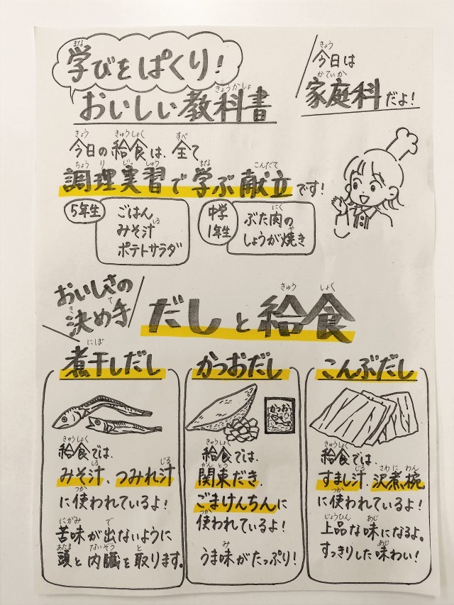 「学びをぱくり!おいしい教科書」、今日は家庭科の献立です。