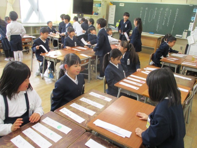 国語科「ものの名まえ」で学習したことを生かして、お店やさんごっこをしました。自分で作った商品を並べて、お店やさんになりきって「いらっしゃいませ」「おすすめは何ですか」などの声をかけていました。